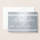 This personalised silver foil sympathy greeting card design features the message "My thoughts are with you…" on the front, along with a customised message on the inside. It could perhaps be used to offer sympathy to the relatives of somebody who has recently passed away.
