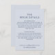 This elegant wedding details / info card features a lovely light blue background and vintage inspired typography in dark slate blue. The back of the card is the same light blue colour - to which you can also add additional text if needed. This design would be a fabulous choice for a wedding in any season. All colours of this design are customisable. See the collection for coordinating items!