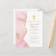 Elegant pink and gold agate decorate this pretty personalised confirmation postcard invitation for a girl's Christian ceremony celebration. Customise with a name and details under the beautiful cross for a chic religious party invite.