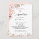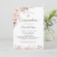 Beautiful floral watercolor girl Confirmation invitation with exquisite floral arrangement on top left corner and field of flowers on card's bottom, with flowers in delicate peach, blush pink tones with rose gold glitter details and mint greenery. Card's back in green mint shade with flower detail on the bottom. Invitation with section for "Ceremony" and "Reception" details. Part of our "Mint Elegance" wedding and events collection.