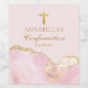 Elegant pink and gold agate decorate these pretty personalised confirmation wine bottle labels for a girl's Christian ceremony celebration. Customise with a name under the beautiful cross for a chic religious party favour.