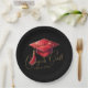 Elegant Congrats Grad Artwork in Red, Gold & Black Paper Plate