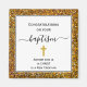 Elegant Congratulations ADULT BAPTISM magnet with simple gold coloured cross, faux gold glitter border and decorative script typography, Wording reads CONGRATULATIONS ON YOUR BAPTISM. Underneath there is CUSTOMIZABLE TEXT which reads 'Anyone who is in Christ is a new creation' which is based on 2 Corinthians 5:17. This text can be personalised by adding your name and date, or alternative wording. This baptism magnet would make an ideal favour keepsake giveaway for baptismal candidates. Matching cards and other baptism designs are available. Choose from a wide selection designed by Berean Designs.