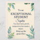 Featuring a soft parchment-style background with watercolor leaves and gold accents, this card delivers a heartfelt message: “To an EXCEPTIONAL STUDENT – Your hard work, growth, and positivity have made an impact. Keep up the great effort.”