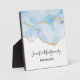 Elegant Cool Blue Agate with Gold Glitter Ribbon Plaque