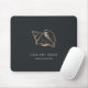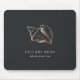 Island chic personalised mousepad for your business or home office features two lines of custom text in classic white lettering, on a soft black background adorned with a tropical conch shell illustration in faux copper foil for a beach glam look.