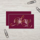Modern business card design featuring stylish faux copper rose gold "makeup" text on a burgundy background.