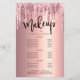 This gorgeous makeup price list design features faux pink & copper rose gold dripping glitter metallic texture and elegant calligraphy font.