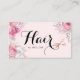 Modern and elegant appointment card for hairstylists with faux copper rose gold scissors, pink and white roses and elegant calligraphy font.