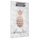 Beautiful design with modern faux copper rose gold pineapple, white marble background and elegant calligraphy font.