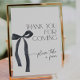 Elegant Coquette Black Bow Thank You for Coming Pedestal Sign