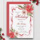 Elegant Coquette Floral Christmas Party features a chic holidays design with bouquets of watercolor winter flowers with greenery on a red and pink ribbon frame. Add your personalised Holiday Party Invitation information in the centre. Perfect for Christmas parties with family and friends. Created by Evco Studio www.zazzle.com/store.evcostudio