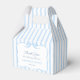 Elegant favour box design with a watercolor pale blue bow and blue and white stripesr. Shown here for a wedding but all of the text can be personalised to your event (you can also add or delete text fields from inside the design tool). Would also work well for a baby shower, bridal shower or birthday.