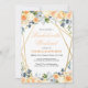 Cheerful, watercolor flowers in peach, and blue grey and botanical accents are featured in this design in a boho watercolor style within a gold double geometric frame. Customise this elegant floral bachelorette weekend itinerary invitation with your own colours and fonts or keep this popular typography as it is for your convenience. MIx and match with other items in this pretty wedding collection.