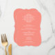 Elegant and formal wedding dinner menu cards feature a pop of colour with white reverse printing. Personalise with your event date and menu details. Display cards on guests' dinner plates or wrap them in napkins at every place setting for a stylish look. Coral orange / salmon pink background colour.