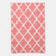 Elegant Coral Quatrefoil Tiles Pattern Tea Towel