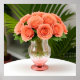 Elegant Coral Roses in Glass Bottle on Table Poster