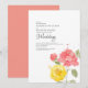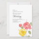 Hand-painted watercolor floral wedding invitation in coral and yellow tones, designed by me.