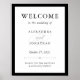 This elegant, stylish wedding welcome sign features chic black text on a white background, bordered in classic black.