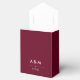 This elegant, stylish wedding favour box features modern white text on a trendy marsala coloured background.