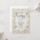 Announce your fairytale union with this antique-inspired design. Featuring a romantic Baroque aesthetic, it offers the look of luxury sculpture on high-quality paper.This design features a sophisticated monochromatic palette of cream, ivory, and soft beige, simulating the appearance of carved plaster or limestone. The artwork showcases a faux bas-relief frame adorned with classical architectural columns, intricate filigree scrollwork, and blooming rose vines. At the header, two elegant swans face one another to form a subtle heart shape, resting atop a bed of sculpted florals. The typography is presented in a formal charcoal grey script and serif font, ensuring high contrast against the light background.