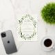 A cream reception only wedding invitation, featuring hand painted snowberries and stems of eucalyptus arranged into a beautiful botanical frame. The text and scattered dots on the front of the card are foil pressed. All text is fully editable. Please view this Collection in my store for invitations with alternative wording options, different colours and for coordinating items.