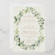 A cream reception only wedding invitation, featuring hand painted snowberries and stems of eucalyptus arranged into a beautiful botanical frame. The text and scattered dots on the front of the card are foil pressed. All text is fully editable. Please view this Collection in my store for invitations with alternative wording options, different colours and for coordinating items.