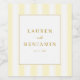 These elegant wedding wine labels feature a minimalist design with a central white square bordered by gold lines, set against vertical yellow and cream stripes. The colour palette includes soft yellows, creams, and golds, creating a warm and inviting tone perfect for celebrating special moments. With customisable placeholder text in classic serif fonts, these labels offer a sophisticated touch to any wedding celebration, emphasizing simplicity and focus on the essential details. Ideal for adding a personal and luxurious feel to your event, these labels are designed to make your wedding stand out.