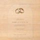 This elegant acrylic invitation features a minimalist design with two interlocking gold wedding bands at the top, symbolising unity and love. The soft cream background provides a neutral canvas that highlights the sophisticated serif typography, which is centrally aligned for a balanced look. The clean layout and tasteful use of colour create an atmosphere of timeless sophistication, perfect for formal weddings. Customisable text fields allow personalisation while maintaining the overall luxurious feel, making it ideal for couples seeking a classic yet modern aesthetic for their special day.