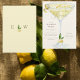 Watercolor Limoncello Wedding Shower Invitation. Monogram on back. Can be changed to bridal shower. Elegant. Cream and Yellow.