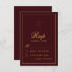 Reply in style with this elegant wedding RSVP card, featuring a custom monogram, dark burgundy background, gold borders and formal script details. Perfect for formal, fall wedding, this response card adds a touch of tropical elegance to your suite. A beautiful way for guests to respond while capturing the relaxed charm of your island celebration.