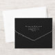 Elegant black all-in-one wedding invitation featuring your monogram initials inside a vintage wedding crest, your names, "Reception to follow" and "Rsvp" showcased in a chic calligraphy script, your invitation details in classic serif typography, and a white tear-away RSVP response postcard, all rendered in your choice of genuine gold, silver or rose gold foil. If desired, you can adjust the size of the script for longer or shorter names by editing in the design tool.