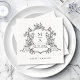 Classic black and white floral crest wedding napkin with monograms, perfect for a modern classic or romantic vintage wedding. For more advanced customisation of this design, please click the BLUE DESIGN TOOL BUTTON above! Matching items are also available.