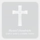 This elegant, modern boys First Holy Communion sticker features a white cross and a grey neutral background.