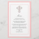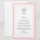 An elegant cross designed with swirling curls and fancy fleur de lis patterns, coordinates perfectly with our baptism, communion and confirmation invitations. Each line can be customised for your menu. Pretty pink cross design is available in matching stickers and postage as well.