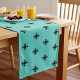 Elegant Cross Motif in Black and Pastel Teal Blue Long Table Runner