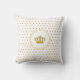 Elegant throw pillow with beautiful royal crown and small gold polka dots on white background. Crown only on the front side.