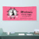 © 2019 Socialite Designs Inc. Our bakery banner incorporates a woman silhouette, holding a cupcake on a tray, with an elegant scroll border and ribbon. The background has a pink striped pattern. All design elements can be moved or resized.