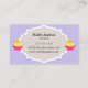 © Socialite Designs. Elegant, decorative swirl design banner and striped background, in lavender, baker business card. The design incorporates a gourmet pink and green cupcake design on the front and back. All design elements can be individually moved, resized, or deleted by customising the business card.