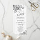This beautiful wedding program features an elegant black and white design with lacy curls and swirls in the corners. The titles are written in fancy script calligraphy, and there is space for your ceremony and wedding party details, as well as a short thank you for your guests. Wonderful way to welcome your friends and family to your wedding celebration.