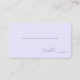 This elegant place card features a minimalist design with a soft lavender background, creating a serene and sophisticated atmosphere. The layout includes two simple lines for customization, accompanied by the word "table" in an elegant cursive font, adding a touch of refinement. Perfect for weddings, formal dinners, or any special occasion, this card combines style and functionality to enhance your table setting. Its clean and modern aesthetic makes it versatile for various events, ensuring a polished look wherever used.