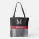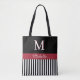 Elegant Custom Monogram Name Black White Stripes Tote Bag