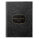 Elegant vintage black floral botanical pattern notebook with a custom name in gold stylish script typography and "notes" in gold modern san serif font.