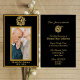 Our custom photo invitation allows you to personalise the design with a cherished photograph, making it even more special for the happy couple. The golden accents effortlessly enhance the classic black background, creating an elegant and modern invitation that will impress your guests.