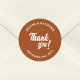 Elegant Custom Terracotta Thank You Wedding Favour Classic Round Sticker