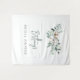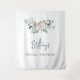 Elegant Winter Greenery Foliage Calligraphy Script Bridal Shower Photo Backdrop or Welcome Tapestry - fully customisable text elements to fit your wedding event.