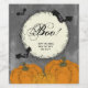 A stylish Halloween wine bottle label featuring a glowing full moon, bats, pumpkins, and the word Boo! — customisable with your name, business, or personal message. Perfect for realtors, small business owners, or professionals who want to leave a festive impression with clients.