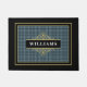 Welcome guests to your home with this customisable doormat that features a classic black and grey windowpane plaid pattern highlighted with an elegant gold emblem. Personalise it with your family name to add a touch of sophistication and masculinity to your doorstep. This timeless design will make a great gift for yourself, family, friends, or new homeowners. Modify the name to meet your needs and create a warm, inviting entrance.