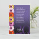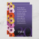 Add style to your wedding reception with this floral-themed table seating chart, which lets guests find their table. Features elegant white lettering, garlands of colourful African daisies, and lavender purple confetti set on a violet purple to black background. Customise with names of the attendees and table number.
