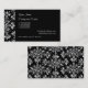 A custom business card template with a simple and elegant damask pattern of daisies and leaves in white on black, or customize it to change background colors, pick your fonts and add custom text and more, even save your design for later.